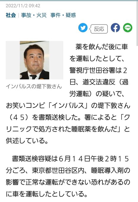 インパルス堤下また事故 しかも1日2度 過去には睡眠薬のみ運転し事故 ごみ収集車に追突も 日刊ゲンダイdigital
